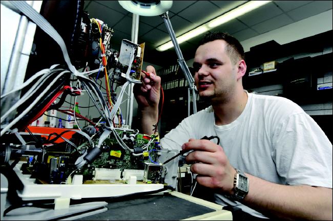 In Einöd direkt neben dem SB-Warenhaus GLOBUS befindet sich unsere Servicewerkstatt. Wir verfügen über 20 modern ausgestattete Arbeitsplätze, die den hohen Anforderungen unserer Industriepartner entsprechen und zum Teil sogar übertreffen. Seit unserem Umzug am 01.05.2007 in neue Räumlichkeiten im selben Gebäude haben wir auf 700 qm Fläche die Möglichkeit, nicht nur Kunden zu betreuen, die uns direkt aufsuchen, sondern auch hohe Reparaturaufkommen zu bewältigen. So bewältigen wir monatlich ca. 1000 Reparaturen und disponieren mehr als 2000 Außendiensttermine. Aus diesem Grund sind mehrere große Elektrofachmärkte unsere Partner. Wir wickeln für diese Häuser den Service ab und liefern Neuware aus. Unser Einzugsgebiet erstreckt sich über das gesamte Saarland bis zur Vorderpfalz, sowie das Grenzgebiet von Frankreich. Ebenso betreuen wir die Region Trier, Eifel, Hunsrück, Mainz, Ludwigshafen. Dieses Gebiet betreuen wir täglich mit rund 19 Servicefahrzeugen. Erfahren Sie mehr über unseren In-Home-Service. Unser Unternehmen ist ein in der Handwerksrolle des Saarlandes eingetragener Meisterbetrieb. Neben der Beschäftigung von Fernsehtechniker und Informationstechnikern bilden wir auch Informationselektroniker und Bürokaufleute aus. Für technisch Interessierte finden Sie hier eine detaillierte Aufstellung unseres Meßgeräteparkes.